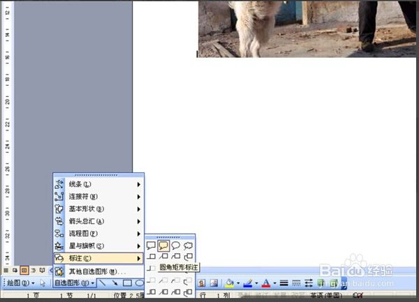2然后在word文档下面“绘图”工具栏中点开“自选图形”---->标注