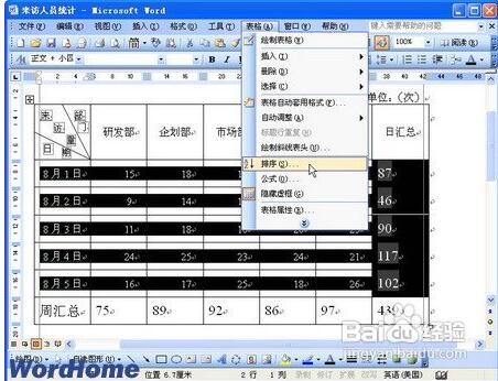 word2003中表格怎么排序