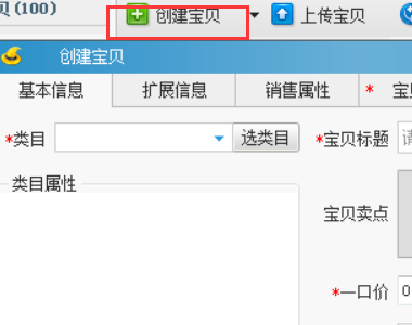 4、如果没有数据包文件,则如下图中一样,点击创建宝贝,再逐项填入相应的产品信息。
