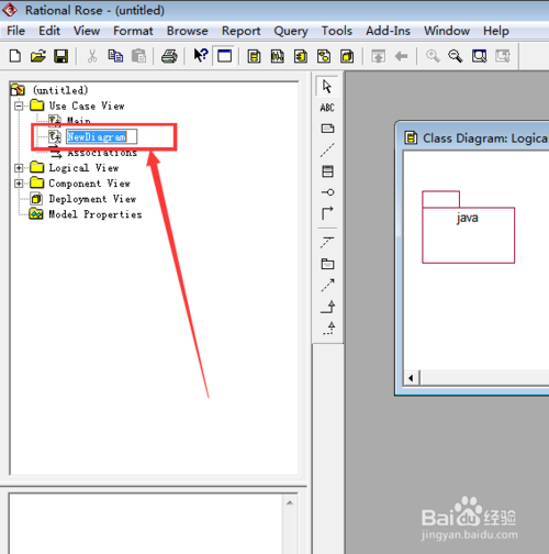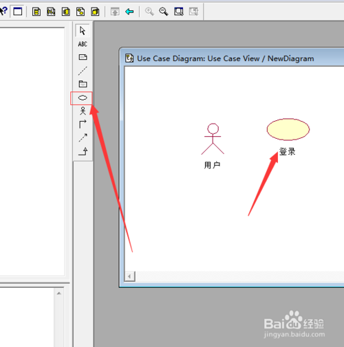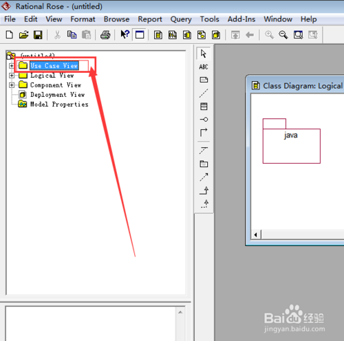 在界面左边有一个“use case view”,可以在这里新建一个用例图。