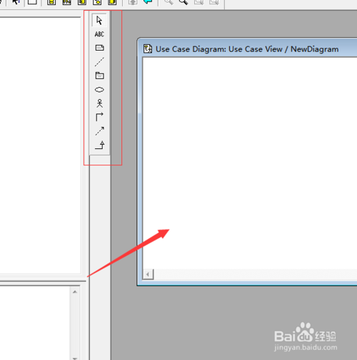 双击之前建好的用例图,右边就会弹出这样的窗口,有工具栏,有白色画布。