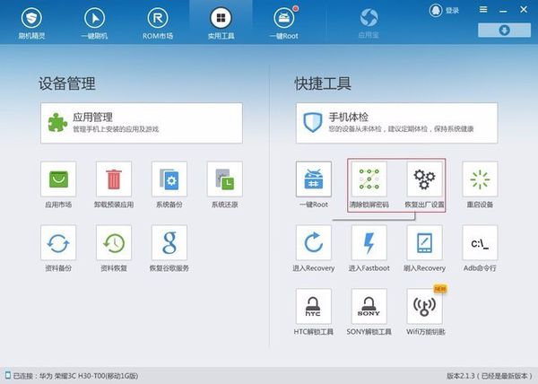 2、在上面截图画红框的实用工具位置,点开后会发现有不少选项可以选择。按照图中所示的步骤,单击使用清除锁屏密码的工具。