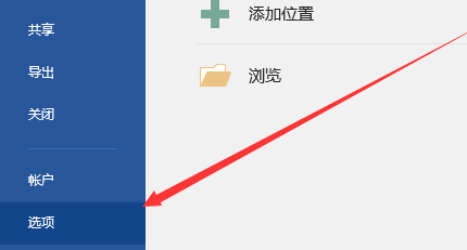 2.在打开的“文件”命令窗口中,点击“选项”命令选项。