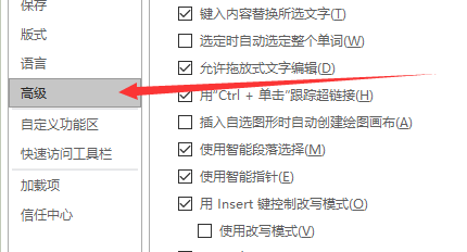 4.在“Word选项”对话窗口中,将选项卡切换到“高级”选项卡栏。