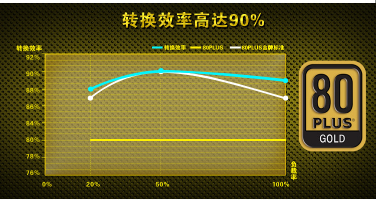 对,你没有听错。就是这么超节能。在进行高负荷大任务的状态下,主机的整个功耗则可能达到140W,甚至200W,无论何时这款电源都能够游刃有余的为主机提供稳定、纯净而强力的电力供应。而这是被动式PFC电源所无法办到的。那些二百元以内的电源多是被动式PFC。因此电源方面不能贪图便宜。以399元这个价位来说,此款台系型号相当超值的了。要知道其它的大牌如航嘉的可是更贵的唷!而一般的产品,能达到85%的转换效率已经很不错的了,多数只能达到80%。