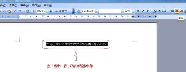 2、段落居中:选定整篇文档,单击格式→段落→水平居中或者点工具栏的居中。