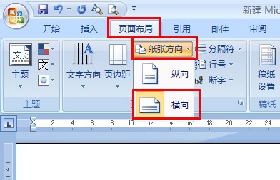 3、然后点击office按钮,点击打印,确定,打印出来的文档就都是横向的了。