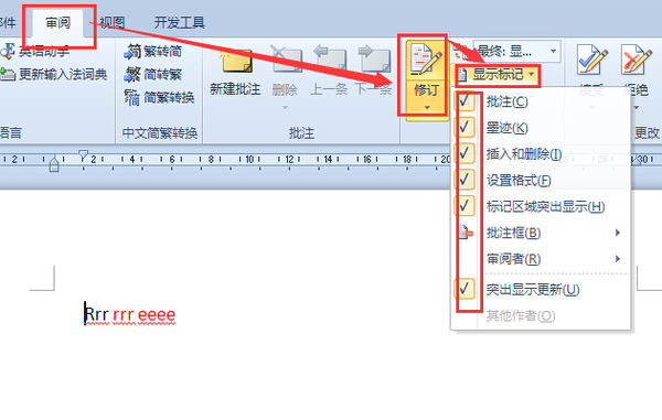 9.假如修改完毕,还有几种方式来查看修改,第一种显示标记的最终状态,如图所示。