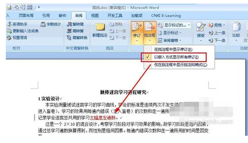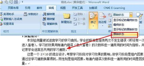 2、单击单间----显示标记的.... -----显示标记的原始状态;