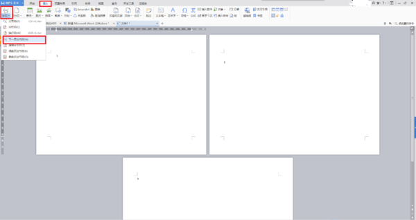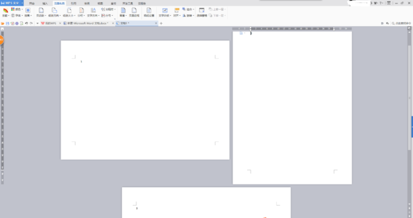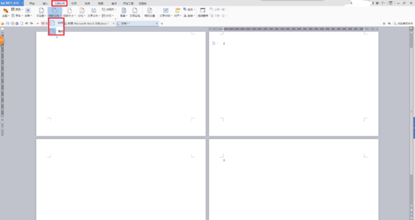 1、首先插入两页word文档,现在两页都是默认的纵向排列。