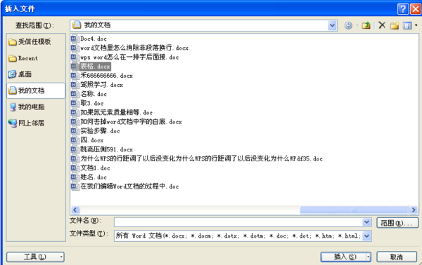 这样,就将其它Word文档中内容复制到现有的文档中,不是以单独文件的形式存在,这就是插入文档的功能。