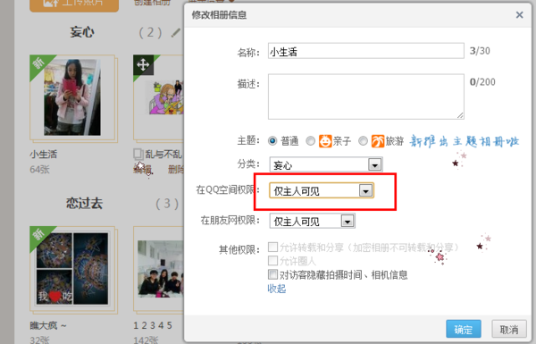 QQ空间上传相片不想显示在好友的动态里。怎么设置