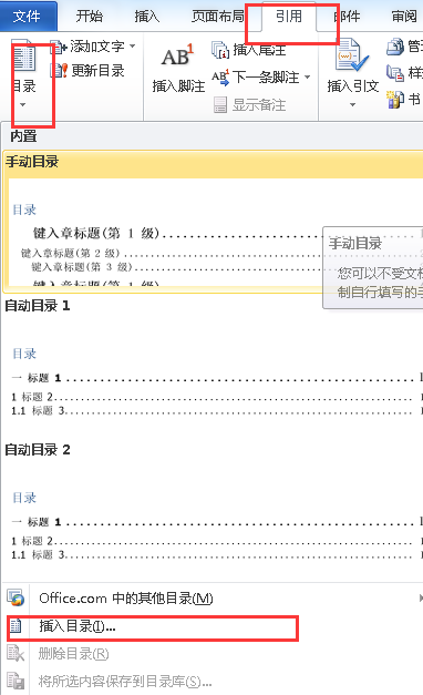 第二步:点击【引用】---【目录】,然后选择【自动目录1】或者【自动目录2】