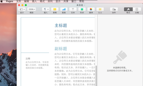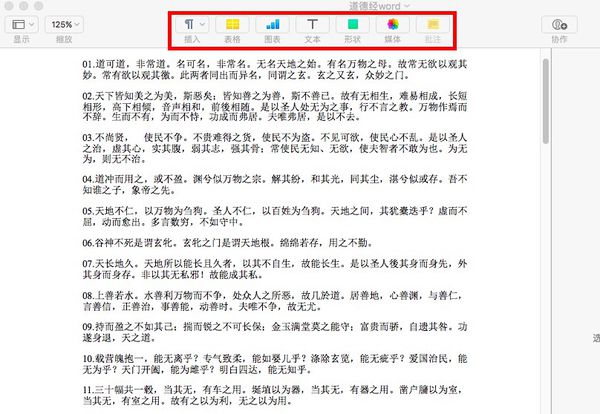 三、Pages程序上方中央位置有一排功能,选择需要的功能对Word文档进行处理。