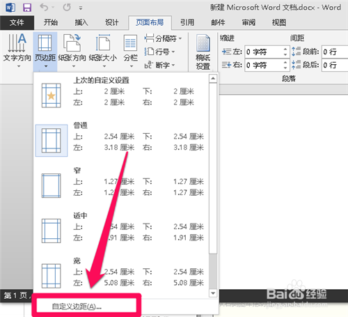 打开word后,选择“页面布局”选项卡,并单击“页边距”按钮。