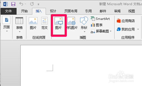 返回word界面后,单击“插入”选项卡中的“图片”按钮,插入本机中的图片。