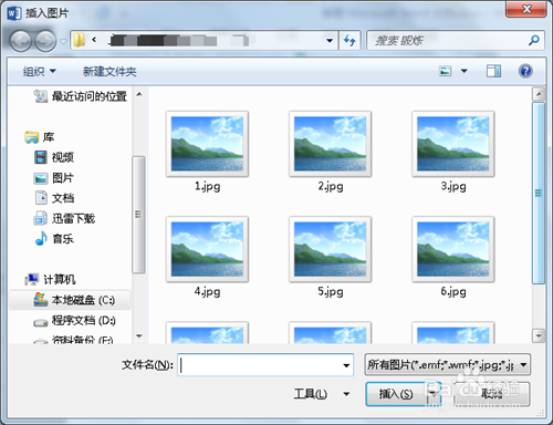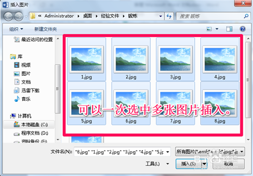 在插入图片时,可以一次选中多张图片批量插入到word中。