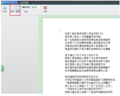 3、然后现在使用工具栏中的那个“打印预览”按钮,打开了打印预览页面,如图:可以选择“单页”、“双页”进行预览的哦。