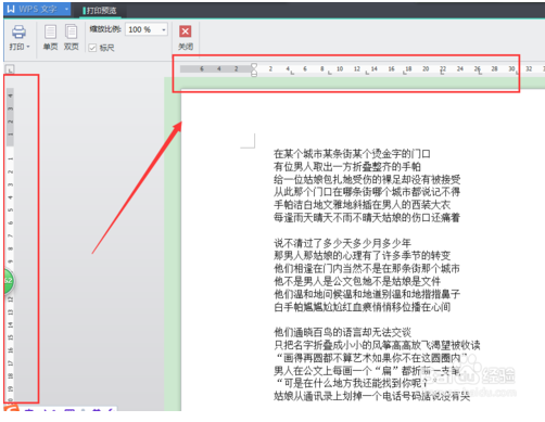 4、点击使用关闭按钮,返回到编辑状态,使用缩放比例,调整预览效果,还可以直接使用“主菜单”中的“文件”-“打印预览”功能哦。如图所示