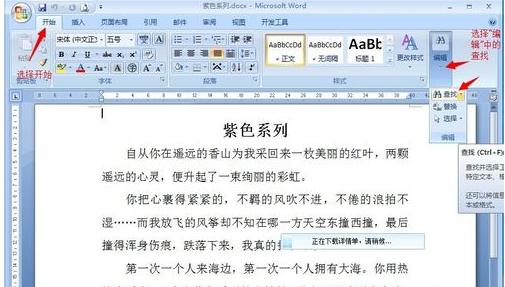 第一:从“开始”菜单找到“编辑”,点开后选择“查找”或直接按Ctrl+F快捷键