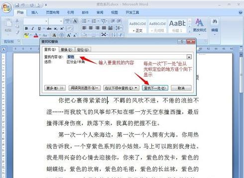 第二:打开“查找和替换”对话框后,输入要查找的内容,点查找下一处