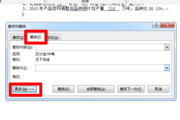 三、然后,在窗口中“替换”选项卡中点击“更多”,点击打开。