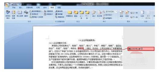 2、选中需要注释的内容, 比如在本案例中,需要在“科技处”这里插入“核心部门”,那么就选中“科技处”,如下图所示