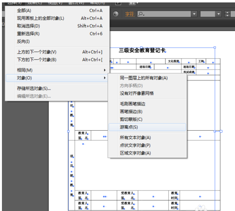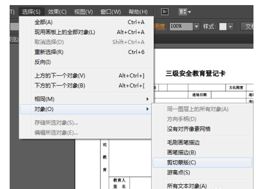 2.单击“选择(S)”——“对象(O)”——“剪贴蒙版(C)”,这样就自动选择好了所谓的“剪贴蒙版”,单击键盘上的“Delete”,删掉“剪贴蒙版”;注意这里删掉剪贴蒙版时不要选择上表格。