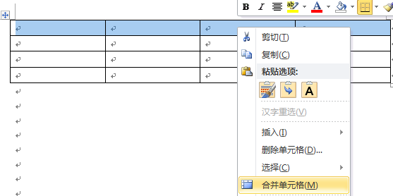 2、选中第一行,右键菜单中选择合并单元格;