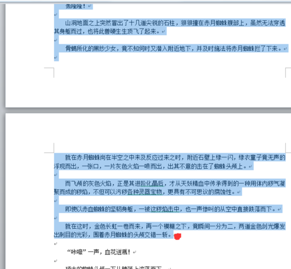 6、如果是非常大,比如说在几百万字中需要选中几十万字进行处理,可以按住CTRL键单击起始位置,
