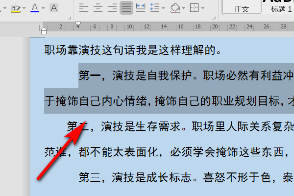 4、然后将用选中选中其他需要的段落,这样就可以在word分别选中不连续的段落了。