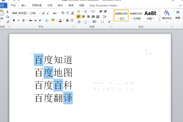 1、打开需要操作的WORD文档,使用鼠标先选中任意相关文字。