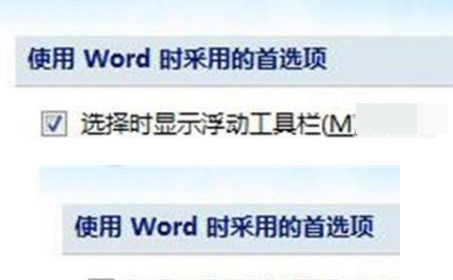 5、在右侧查看”使用Word时使用的首选项“功能区