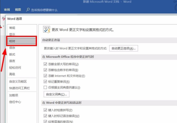 点击审阅中的"语法和拼写错误"后,弹出如图窗口,选择"选项"按钮