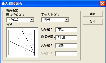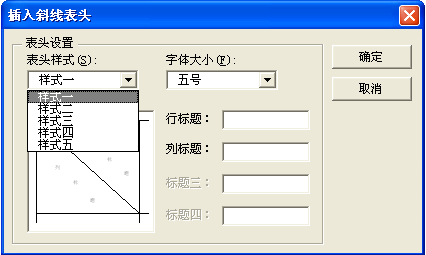 一共有五种样式可供选择,您使用“预览”框来预览所选的表头从而确定自己所需的样式。