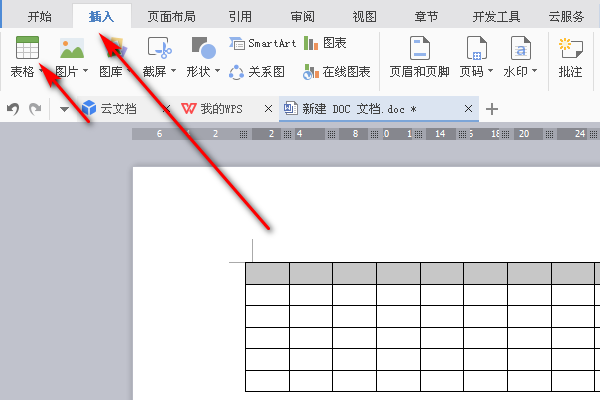 2.点击工具栏上的插入-表格,绘制好需要的表格,如图所示。