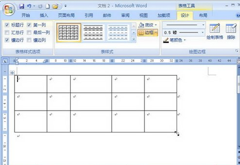 如果准备调整整个表格的尺寸,则可以将鼠标指针指向表格右下角的控制点,当鼠标指针呈现双向的倾斜箭头时,按住鼠标左键拖动控制点调整表格的大小。在调整整个表格尺寸的同时,其内部的单元格将按比例调整尺寸,如图2009011703所示。图2009011703 调整整个表格尺寸