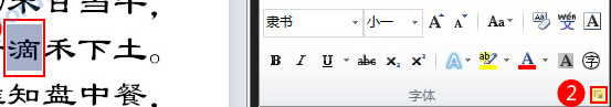 打开Word2010,选中要隐藏的文字,切换到“开始”选项卡,然后单击“字体”组右下角的对话框启动器。