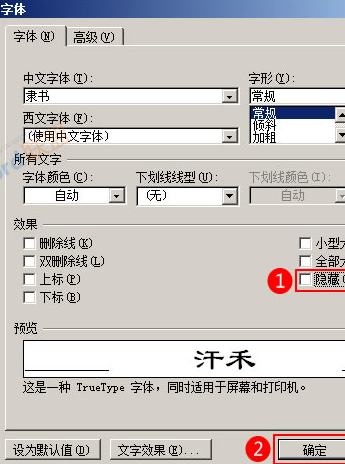 弹出“字体”对话框,在效果中勾选“隐藏”,然后单击“确定”按钮即可。