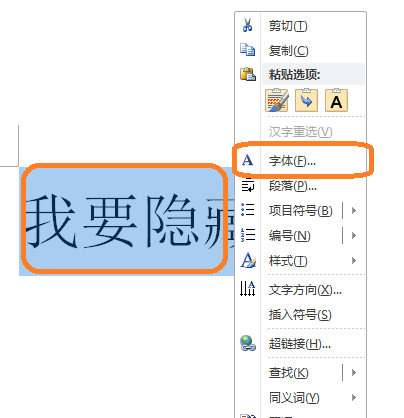 选中隐藏文字左右两侧的文字(或者是整篇文档),然后打开“字体”对话框。