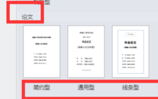 4、举个论文封面的例子,下面分为简约型、通用型、线条型、细条纹型和专业型,每个人都有自己喜好,喜欢简单大方的人会选择简约型的,严谨的人会选择专业型等等。按照文档的主题方向以及自己喜好来选择都可以。