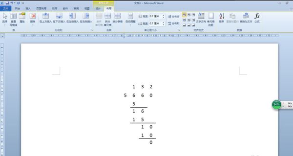 5、在“绘图边框”组中单击“绘制表格”按钮,鼠标变成一支笔形状,在除法竖式算式中绘制需要的横线,然后再单击“绘制表格”按钮取消绘制。