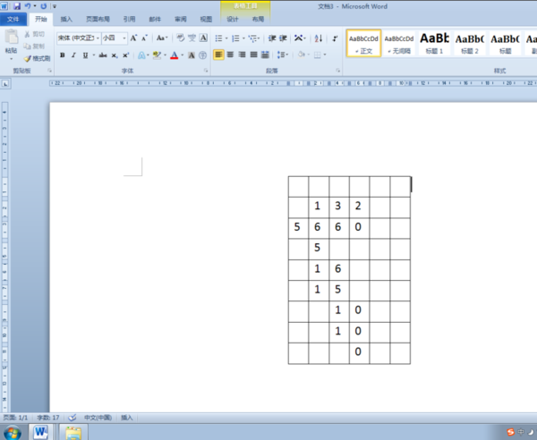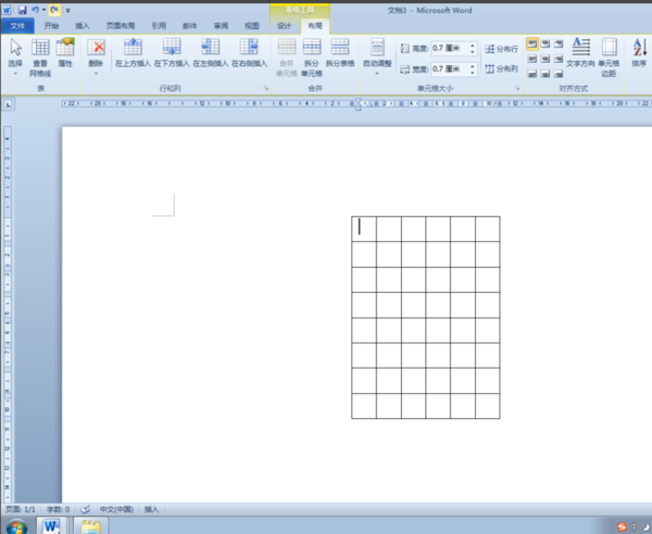 第一步:打开Word2010,根据需要插入一个表格,调整好位置及大小。