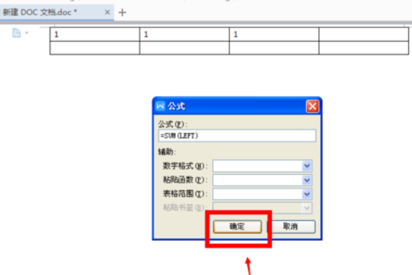 3.在弹出的窗口中,填写公式=SUM(LEFT),然后点击——确定;