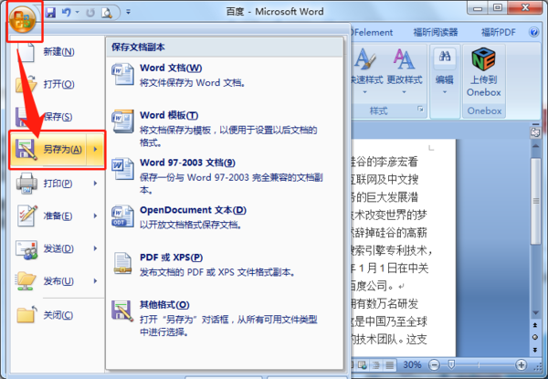 word2007另存为的文件保存的方法,具体操作步骤如下:
