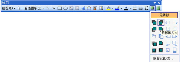 2、在绘图工具栏上,单击阴影样式按钮,在弹出的下拉菜单中,选择所需要的一种样式,如图所示。