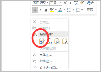 3、切换到新的Word文档中点击鼠标右键,选择粘贴中的“保留源格式”。