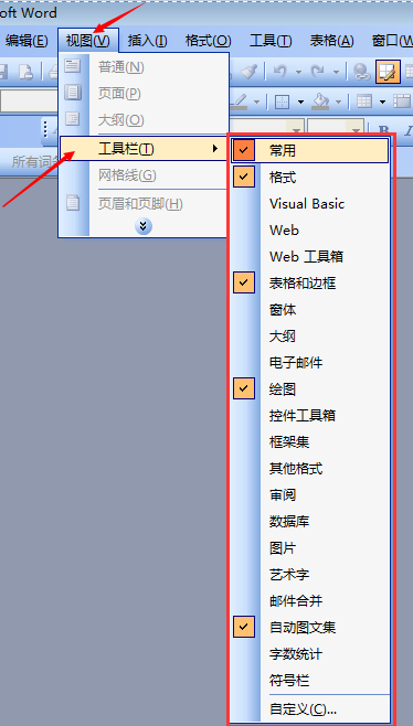 工具栏包括常用工具栏、格式工具栏、绘图工具栏、表格工具栏等。有些工具栏不在窗口显示,可以点击“视图”-“工具栏”,勾选需要显示在窗口的工具栏。