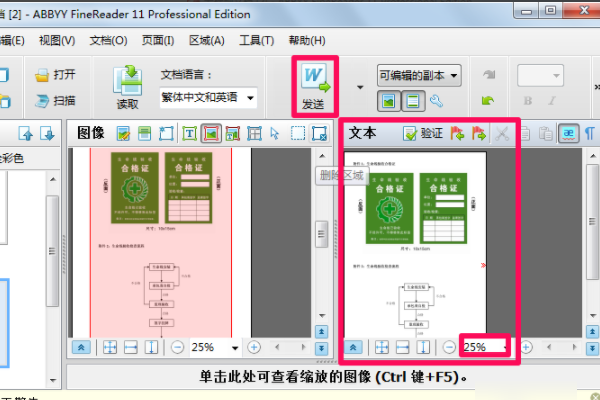 4、我们选择发送到wrod,我们将比较并查看转换结果。但有些字体格式需要稍微调整一下。让我们回到ABBYY并进行调整。