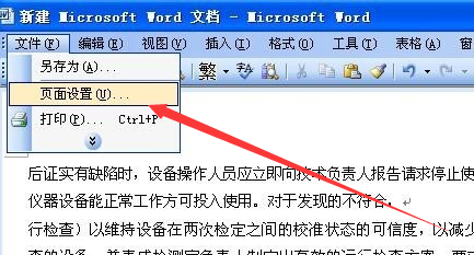 1.打开word文件,将光标定位在第二页的第一行最左端,然后点击“文件”中的“页面设置”。